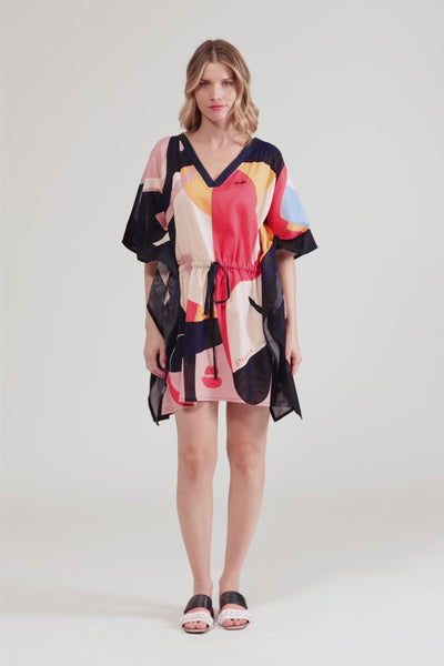 This kaftan can be tied in at the waist to cinch the silhouette to your liking, with a V-neck that visually elongates and adds an elegant touch. Ideal to layer over your swimsuit or as a fluid piece in your summer-ready looks.