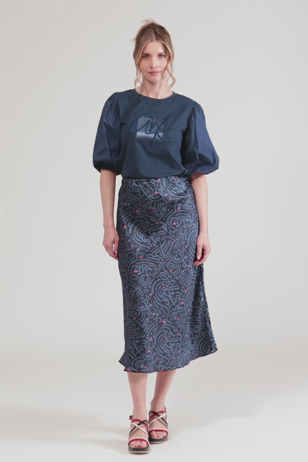 Inspired by our Olympia capsule. Its print blends intense shades with subtle contrasts that evoke the dynamism of the body in motion, the beauty of strength and the harmony of balance. The fluid, lightweight cut follows your steps naturally, while the print adds character without giving up versatility. Ideal to pair with basics or with co-ord pieces from the collection, it’s a piece that’s not just worn – it’s expressed.